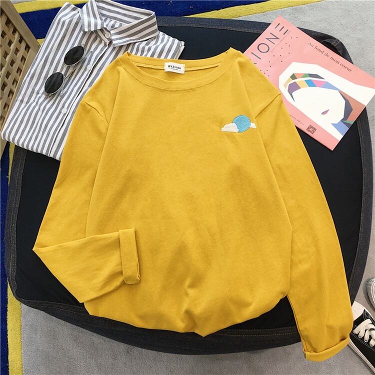 レディース トップス ロンT プルオーバー Tシャツ 長袖 ラウンドネック 刺繍 薄手 伸縮性 かわいい 大人可愛い シンプル カジュアル おしゃれ メンズライク ボーイッシュ ガーリー ラブリー キュート アメリカン カントリー アクティブ ワイルド 無地 春 夏 ママ マタニティ オフィス ビジネス 通勤 通学 デート お出かけ 旅行 海 プール 休日 ショッピング コンサート 楽ちん 体型カバー 普段使い 着回し M L XL 2XL 白 ホワイト 黒 ブラック 黄色 イエロー ピンク ブルー