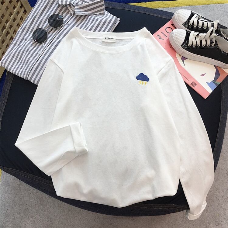 ラウンドネックにワンポイントの刺繍が施されており、シンプルながらもかわいいデザインです。普段着はもちろん、デートやお出かけにもぴったりなアイテムです。