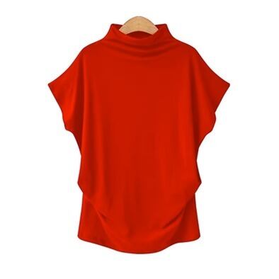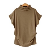 大人可愛いカジュアルな半袖プルオーバーTシャツです。ハイネックとスリムなシルエットが女性らしい印象を与えます♪