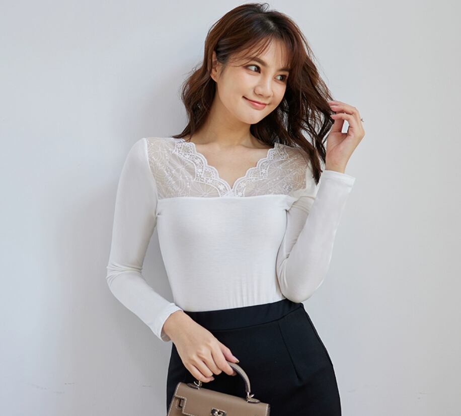 レディース トップス インナー 長袖 Vネック スリム 細身 レース 伸縮性 切り替えデザイン 薄手 かわいい 大人可愛い きれいめ シンプル カジュアル おしゃれ こなれ感 ラフ 個性的 主役級 存在感 とろみ感 抜け感 無地 春 秋 誕生日 発表会 授業参観 大会 会議 MTG ミーティング プレゼン ママ マタニティ オフィス ビジネス OL 通勤 学生 学校 通学 デート お出かけ お泊まり 旅行 海 レストラン 公園 女子会 休日 高原 ホテル ガーデン ショッピング コンサート ライブ 合コン
