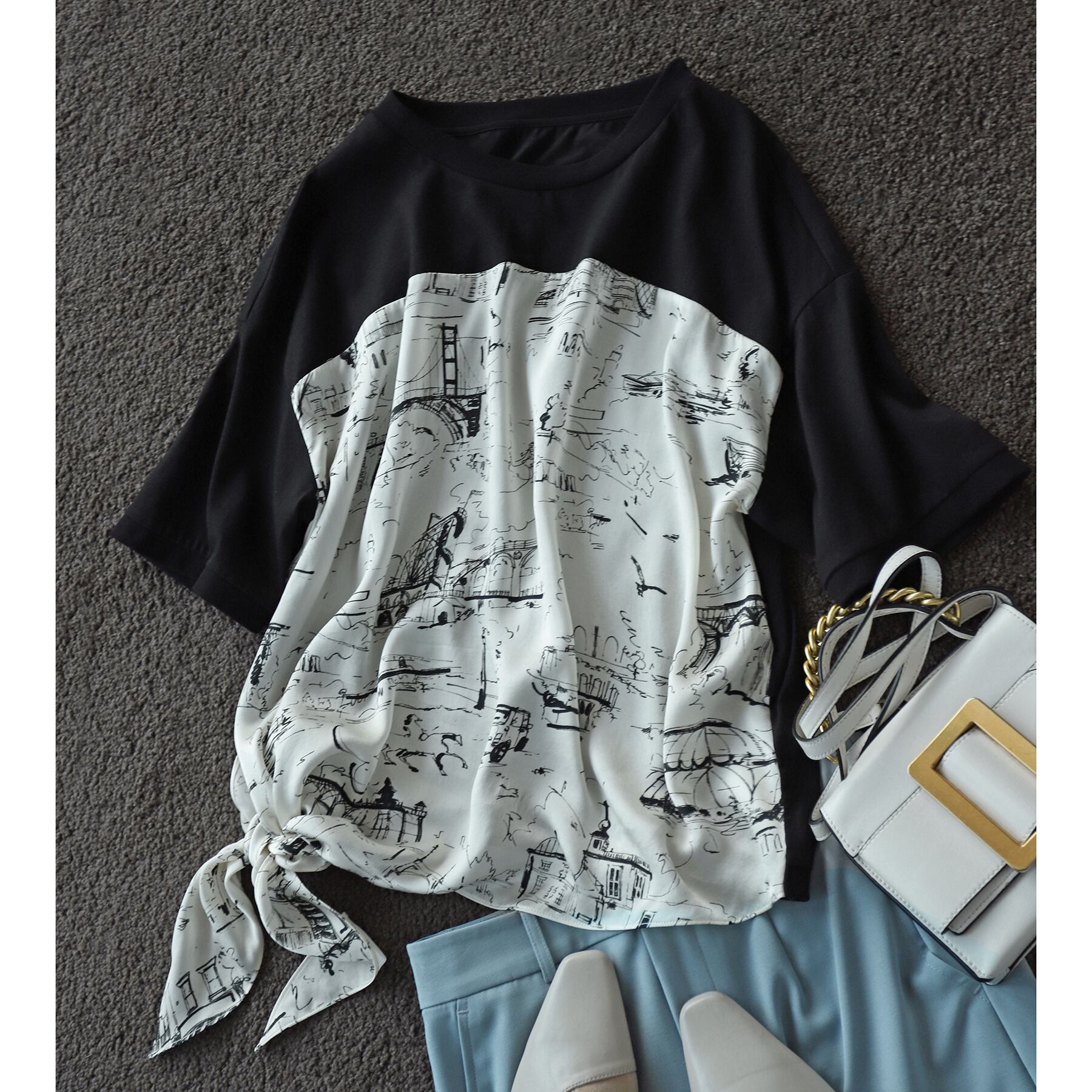 レディース トップス プルオーバー Tシャツ 半袖 ラウンドネック スリム 切り替えデザイン 薄手 かわいい カジュアル 上品 ガーリー ラブリー キュート ベーシック アメリカン アクティブ ロマンティック ナチュラル ワイルド 無地 総柄 春 夏 ママ オフィス OL 通勤 通学 お出かけ お泊まり リゾート 旅行 レストラン ビーチ 公園 女子会 休日 ショッピング ライブ カフェ フェス 楽ちん 体型カバー 普段使い 着回し モテ 清楚 トレンド 流行 S M L XL 2XL 黒 ブラック
