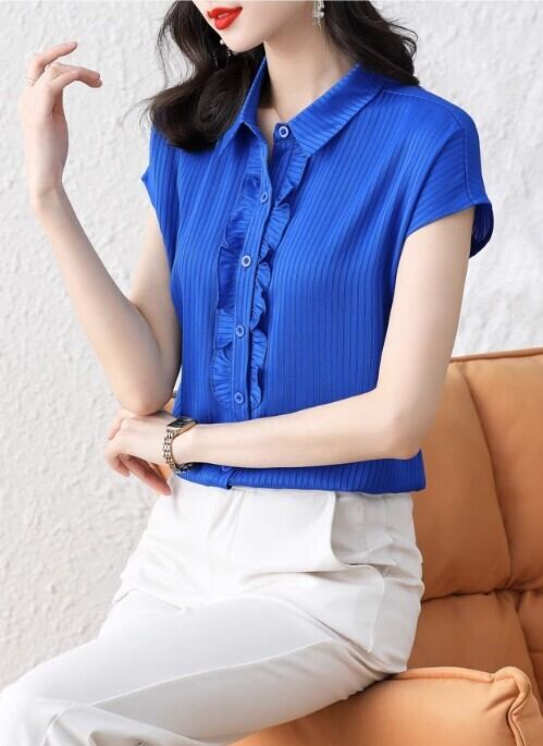 レディース トップス ブラウス 半袖 襟付き 角襟 フリル 透け感 シースルー かわいい 大人可愛い きれいめ シンプル 上品 おしゃれ かっこいい クール モード系 エレガント モダン 主役級 存在感 とろみ感 抜け感 都会的 ストライプ 夏 オフィス ビジネス OL 通勤 学生 学校 通学 デート お出かけ お泊まり 旅行 レストラン 女子会 休日 ホテル ガーデン ショッピング コンサート ライブ 合コン コンパ カフェ 婚活 韓国 オルチャン コーデ 楽ちん 体型カバー 普段使い 着回し 定番