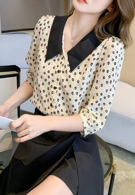 レディース トップス ブラウス 5分袖 7分袖 襟付き 角襟 かわいい 大人可愛い きれいめ シンプル 上品 おしゃれ かっこいい クール モード系 エレガント モダン 主役級 存在感 とろみ感 抜け感 都会的 花柄 フラワー 春 秋 OL 通勤 学生 学校 通学 デート お出かけ お泊まり 旅行 レストラン 公園 女子会 休日 ホテル ガーデン ショッピング コンサート ライブ 合コン コンパ カフェ 婚活 お揃い 韓国 オルチャン コーデ 楽ちん プレゼント 体型カバー 普段使い 着回し インスタ映え