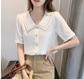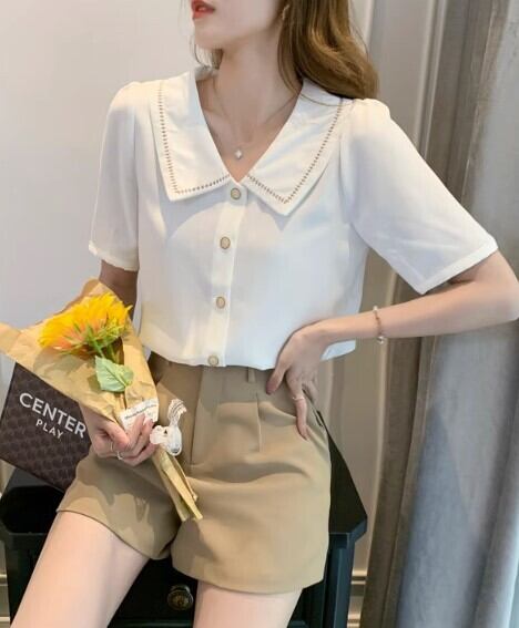 レディース トップス ブラウス 半袖 襟付き 前開き かわいい 大人可愛い きれいめ シンプル カジュアル 上品 おしゃれ かっこいい こなれ感 ガーリー 個性的 モード系 エレガント モダン 主役級 存在感 とろみ感 抜け感 都会的 無地 夏 オフィス OL 学生 学校 通学 デート お出かけ お泊まり 旅行 レストラン 公園 女子会 休日 ホテル ガーデン ショッピング コンサート ライブ 合コン コンパ カフェ 婚活 韓国 オルチャン 楽ちん プレゼント プチプラ 普段使い 着回し インスタ映え