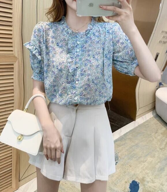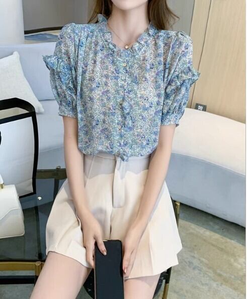 レディース トップス ブラウス 半袖 パフスリーブ フリル かわいい 大人可愛い きれいめ シンプル カジュアル 上品 おしゃれ かっこいい こなれ感 ガーリー 個性的 クール モード系 エレガント モダン 主役級 存在感 とろみ感 抜け感 都会的 花柄 フラワー 夏 オフィス OL 学生 学校 通学 デート お出かけ お泊まり 旅行 レストラン 公園 女子会 休日 ホテル ガーデン ショッピング コンサート ライブ 合コン コンパ カフェ 婚活 韓国 オルチャン プレゼント プチプラ 普段使い 着回し
