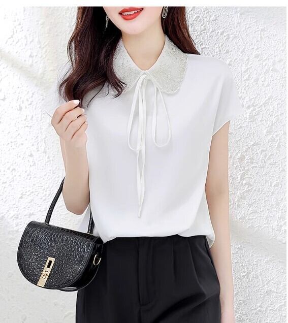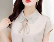 レディース トップス ブラウス 半袖 襟付き りぼんタイ レース 刺繍 かわいい 大人可愛い きれいめ シンプル カジュアル 上品 おしゃれ かっこいい こなれ感 ラフ ガーリー 個性的 エレガント モダン 主役級 存在感 とろみ感 抜け感 キュート 都会的 無地 夏 オフィス OL 学生 学校 通学 デート お出かけ お泊まり 旅行 レストラン 公園 女子会 休日 ホテル ガーデン ショッピング コンサート ライブ 合コン コンパ カフェ 婚活 韓国 オルチャン 楽ちん 普段使い 着回し モテ 清楚