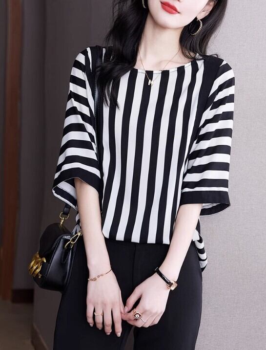 レディース トップス ブラウス 7分袖 襟なし かわいい 大人可愛い きれいめ シンプル カジュアル 上品 おしゃれ かっこいい こなれ感 ラフ 個性的 クール モード系 エレガント モダン 主役級 存在感 とろみ感 都会的 ストライプ 春 夏 オフィス OL 学生 学校 通学 デート お出かけ お泊まり 旅行 レストラン 公園 女子会 休日 ホテル ガーデン ショッピング コンサート ライブ 合コン コンパ カフェ 婚活 韓国 オルチャン プチプラ 普段使い 着回し モテ 清楚 定番