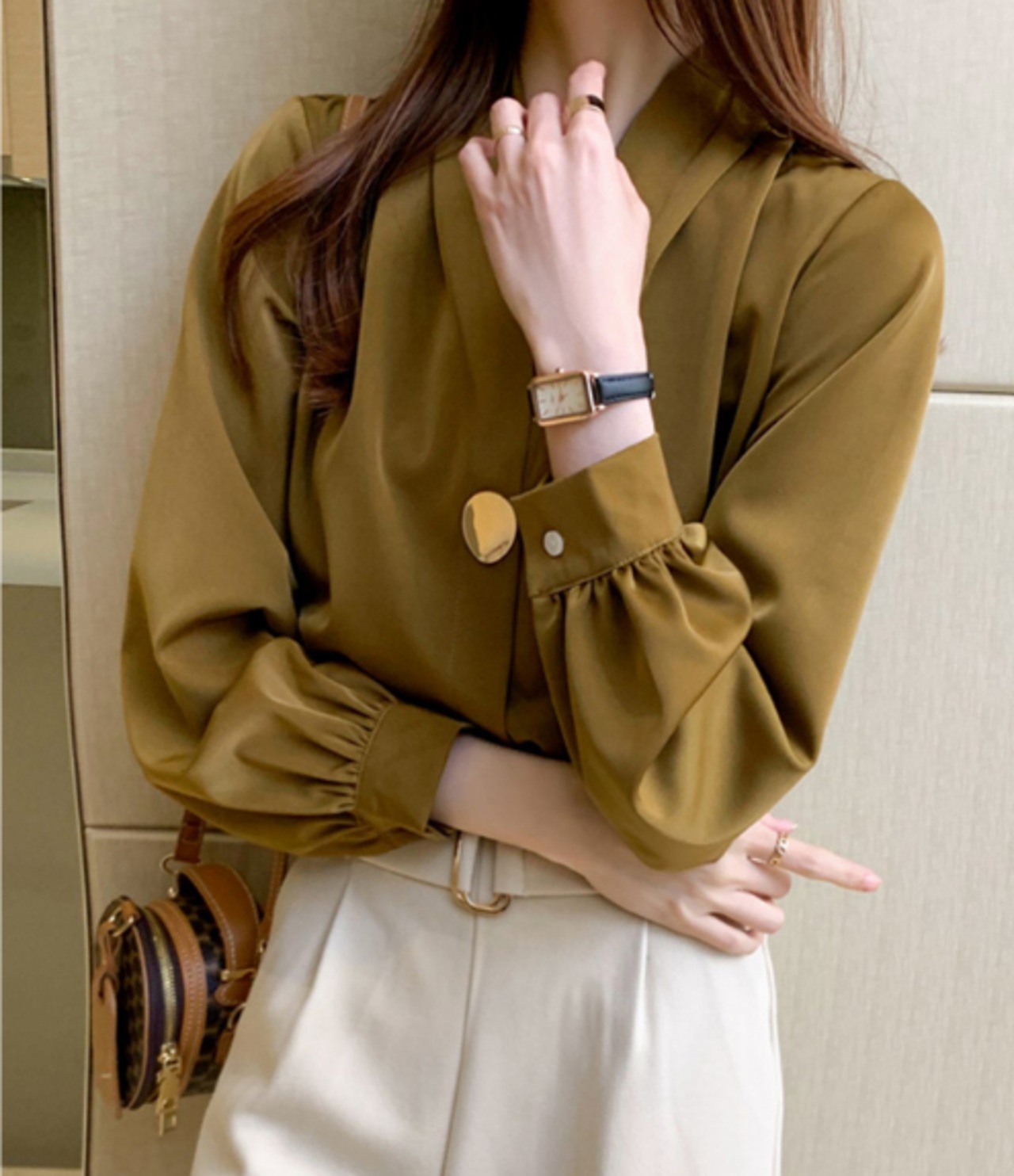 光沢感がある生地が魅力のエレガントなレディーストップス。シャツとブラウスのいいところを取り入れたデザインで、大人可愛い、きれいめな印象を与えます。シンプルながらも上品さが際立つアイテムなので、オフィスやデート、お出かけなど様々なシーンで活躍します。