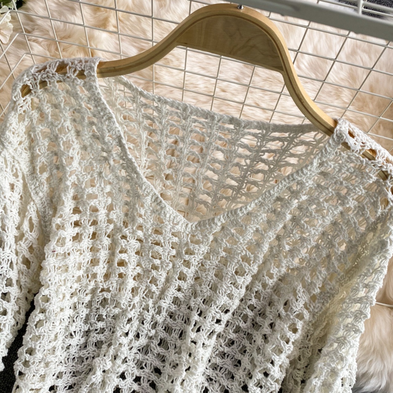 レディース トップス プルオーバー サマーニット 上着 7分袖 フレアスリーブ Vネック ストリート 編み込み 透け感 シースルー アメカジ かぎ針編み 薄手 クロシェ 大人可愛い カジュアル レトロ アジアン エスニック エキゾチック 個性的 都会的 ラグジュアリー アメリカン カントリー アクティブ ロマンティック ワイルド 無地 夏 アウトドア キャンプ リゾート 旅行 海 プール ビーチ 公園 休日 バカンス 重ね着 楽ちん 体型カバー ゆったり ゆる フリーサイズ 白 ホワイト アプリコット