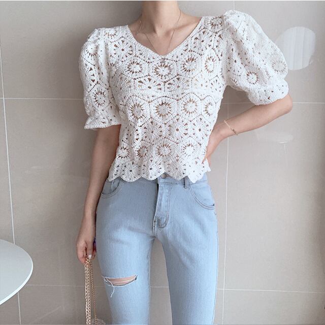 レディース トップス プルオーバー サマーニット 7分袖 パフスリーブ ラウンドネック スリム フェミニン 編み込み 透け感 シースルー かぎ針編みモチーフ 薄手 クロシェ 大人可愛い カジュアル レトロ アジアン エスニック エキゾチック 個性的 都会的 ラグジュアリー アメリカン カントリー アクティブ ロマンティック ワイルド 無地 夏 アウトドア キャンプ リゾート 旅行 海 プール ビーチ 公園 休日 バカンス 重ね着 楽ちん 体型カバー ゆったり ゆる フリーサイズ 白 ホワイト アプリコット