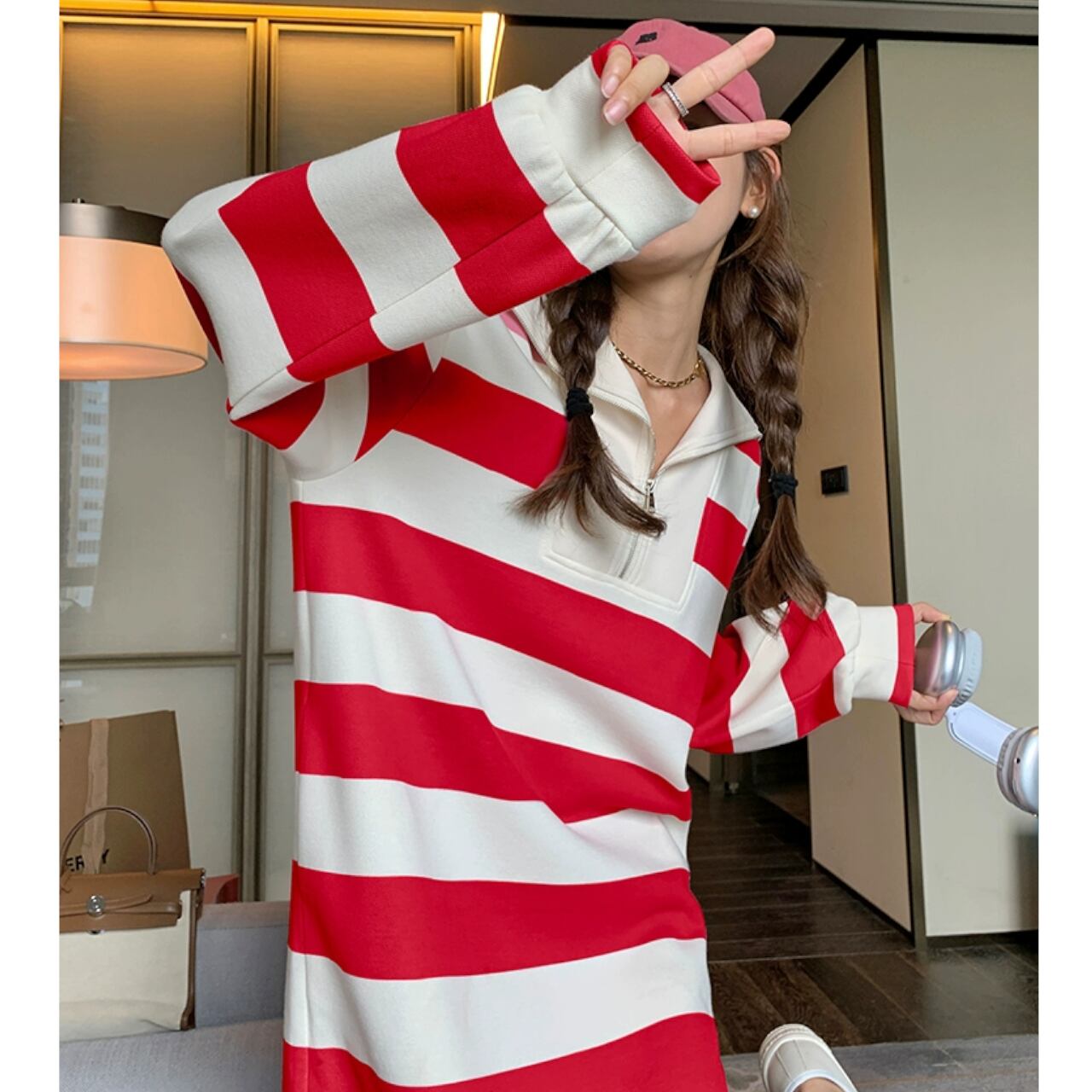 ボーダー柄 ワンピース レディース 膝下 長袖 襟付き ストレート フェミニン ファスナー かわいい カジュアル おしゃれ かっこいい レトロ こなれ感 ラフ 個性的 存在感 抜け感 ラブリー キュート ナチュラル 春 秋 冬 デート お出かけ イベント 旅行 女子会 休日 ショッピング コンサート ライブ コスプレ フェス お揃い 双子 韓国 オルチャン 楽ちん 体型カバー プチプラ 普段使い 着回し 流行 インスタ映え S M L XL 大きいサイズ ゆったり 黒 ブラウン ピンク レッド グリーン