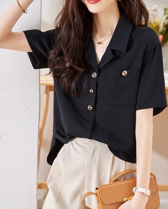 レディース トップス シャツ ブラウス 半袖 襟付き 角襟 前開き かわいい 大人可愛い きれいめ シンプル カジュアル 上品 おしゃれ かっこいい こなれ感 クール モード系 エレガント モダン 主役級 存在感 とろみ感 抜け感 都会的 無地 夏 オフィス ビジネス OL 学生 学校 通学 デート お出かけ お泊まり 旅行 レストラン 女子会 休日 高原 ホテル ガーデン ショッピング コンサート ライブ 合コン コンパ カフェ 婚活 韓国 オルチャン コーデ 楽ちん 普段使い 着回し 定番