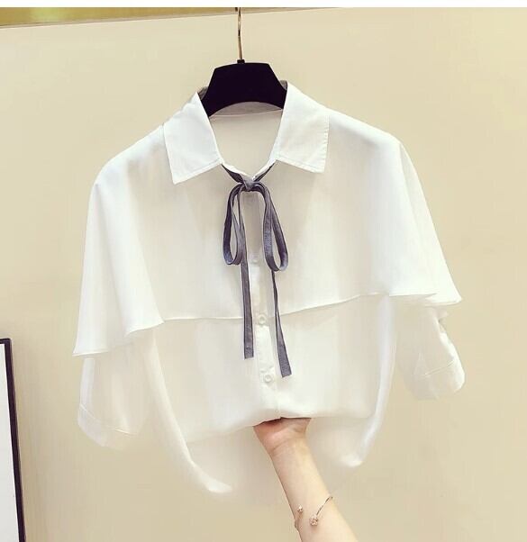 レディース トップス シャツ ブラウス 5分袖 りぼんタイ ケープ風 かわいい 大人可愛い きれいめ シンプル カジュアル 上品 おしゃれ かっこいい こなれ感 ガーリー エレガント モダン 主役級 存在感 とろみ感 抜け感 都会的 夏 OL 学生 学校 通学 デート お出かけ お泊まり 旅行 レストラン 女子会 休日 高原 ホテル ガーデン ショッピング コンサート ライブ 合コン コンパ カフェ 婚活 韓国 オルチャン コーデ 楽ちん プレゼント プチプラ 普段使い 着回し モテ 清楚 定番