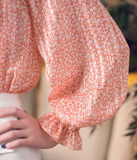 印象的な花柄ブラウスで、あなたのコーディネートを彩りませんか?華やかさと清楚さを兼ね備えたデザインは、カジュアルな着こなしからデートまで様々なシーンで活躍します。ボリュームのある袖と可愛らしいリボンです。