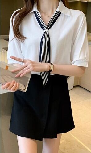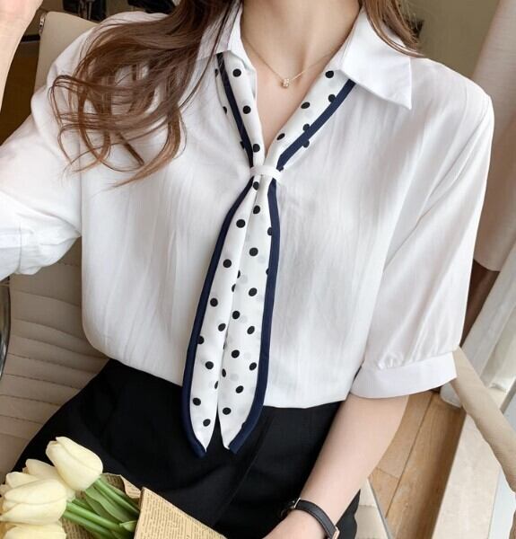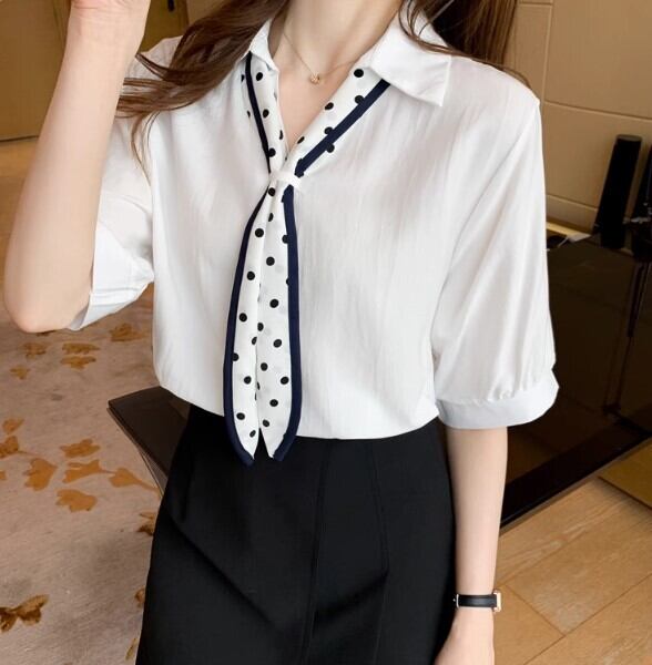 レディース トップス シャツ ブラウス 半袖 ボウタイ ネクタイ かわいい 大人可愛い きれいめ シンプル カジュアル 上品 おしゃれ かっこいい こなれ感 モード系 エレガント モダン 主役級 存在感 とろみ感 抜け感 都会的 夏 OL 学生 学校 通学 デート お出かけ お泊まり 旅行 レストラン 女子会 休日 高原 ホテル ガーデン ショッピング コンサート ライブ 合コン コンパ カフェ 婚活 韓国 オルチャン コーデ 楽ちん プレゼント プチプラ 普段使い 着回し モテ 清楚 定番