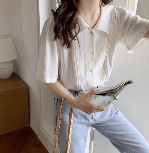 レディース トップス シャツ ブラウス 半袖 襟付き 角襟 前開き かわいい 大人可愛い きれいめ シンプル カジュアル 上品 おしゃれ かっこいい こなれ感 ラフ ルーズ クール モード系 エレガント モダン 主役級 存在感 抜け感 都会的 無地 夏 オフィス OL 通勤 学生 学校 通学 デート お出かけ お泊まり 旅行 レストラン 女子会 休日 ホテル ガーデン ショッピング 合コン コンパ カフェ 婚活 韓国 オルチャン コーデ 楽ちん プレゼント 普段使い 着回し 清楚 定番