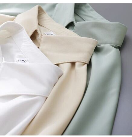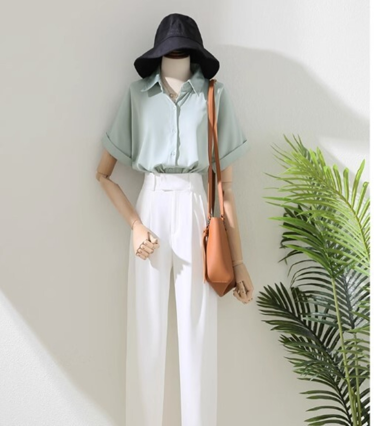 清楚な雰囲気を持つ半袖襟付きブラウス。角襟と前開きデザインがおしゃれで個性的。シンプルながらもモード系のこなれ感漂うアイテム。大人可愛い印象を引き立て、夏のシーンからオフィスまで幅広く対応。モダンでエレガントなデザインが主役級の存在感を放ちます。