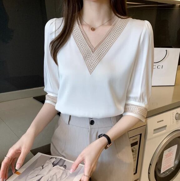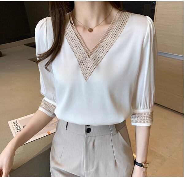 レディース トップス シャツ 5分袖 Vネック 刺繍 かわいい 大人可愛い きれいめ シンプル カジュアル 上品 おしゃれ かっこいい こなれ感 ラフ 個性的 モード系 エレガント モダン 主役級 存在感 抜け感 都会的 無地 春 秋 オフィス ビジネス OL 通勤 学生 学校 通学 デート お出かけ お泊まり 旅行 レストラン 女子会 休日 バカンス ホテル ガーデン ショッピング コンサート ライブ 合コン コンパ カフェ 韓国 オルチャン コーデ 楽ちん プレゼント 普段使い 着回し 清楚 定番