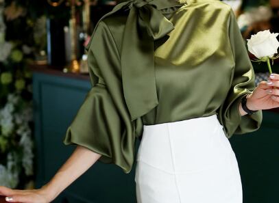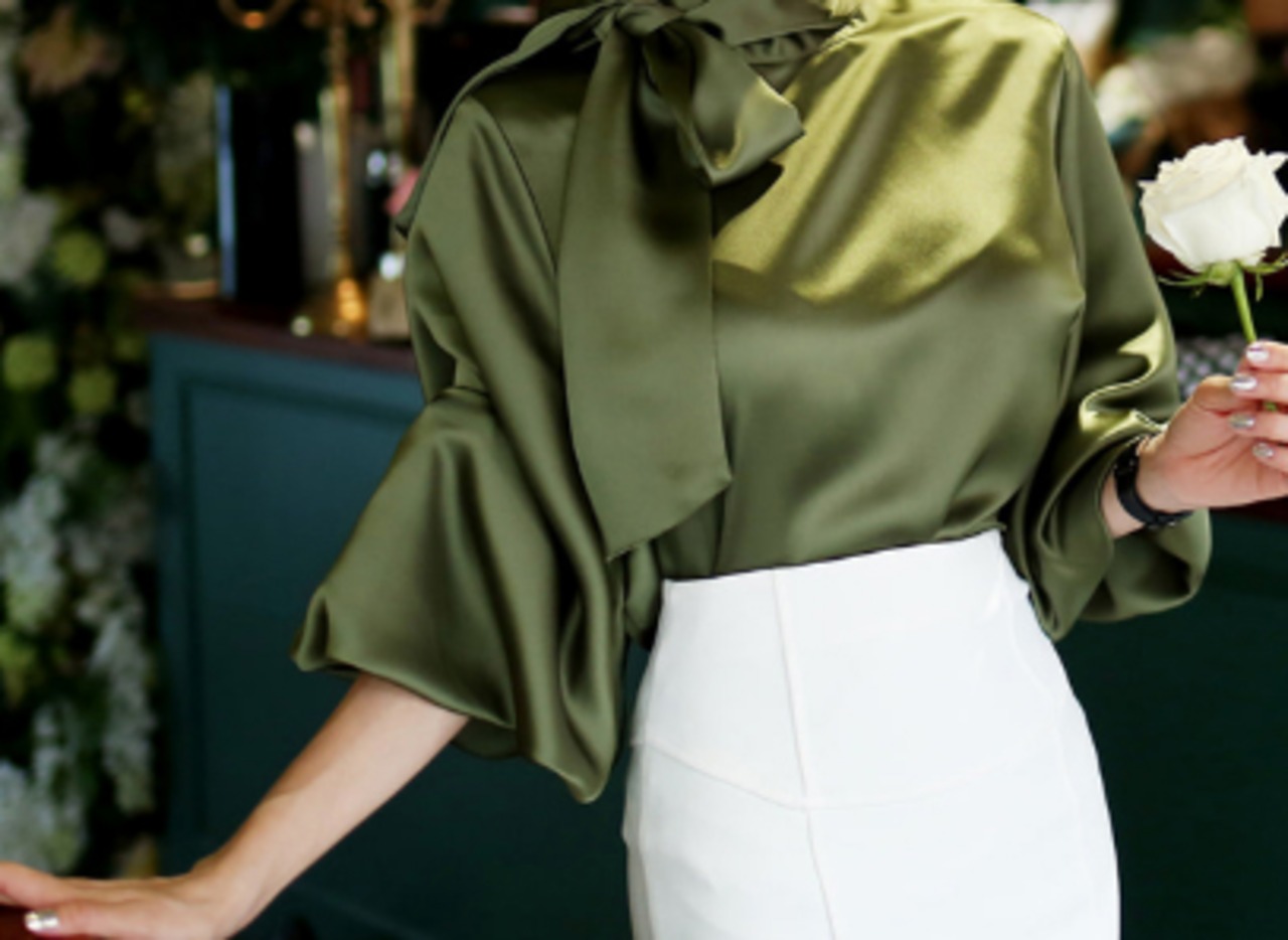 トレンド感のあるレディースシャツの登場です。パフスリーブとボリューム袖の組み合わせがとっても可愛らしいデザインです。光沢感のある生地が上品さを演出し、女性らしい魅力を引き立てます。
