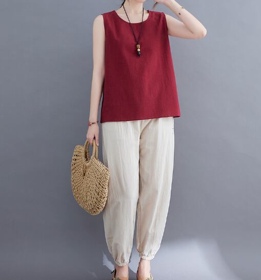 素材に綿麻素材を使用した涼しい着心地のノースリーブトップス。Uネックデザインと細身のシルエットが女性らしい印象を与えます。透け感のある素材でさりげないセクシーさも演出。
