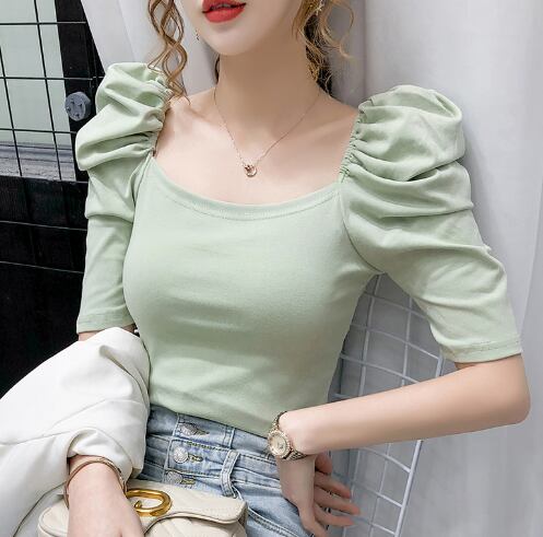 レディース カットソー ニット 半袖 パフスリーブ スクエアネック タイト スリム 細身 フェミニン 伸縮性 かわいい 大人可愛い きれいめ シンプル 上品 おしゃれ かっこいい レトロ アジアン エスニック こなれ感 ラフ ガーリー ルーズ 個性的 クール モード系 エレガント 主役級 存在感 フォーマル とろみ感 抜け感 かっちり ラブリー キュート ロリータ プリンセス ラグジュアリー ベーシック アクティブ ナチュラル 無地 夏 お出かけ 女子会 休日 韓国 オルチャン コーデ プチプラ 普段使い